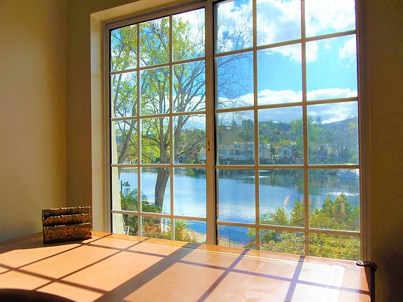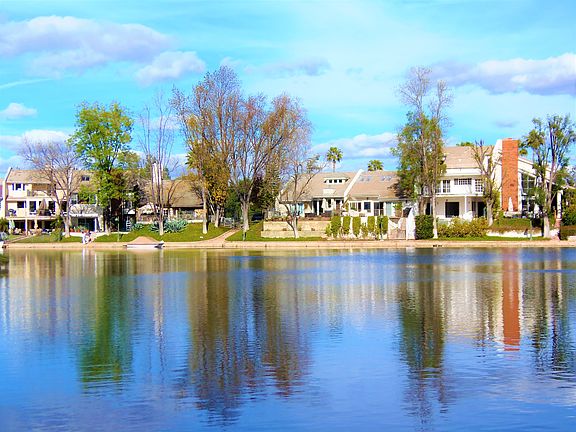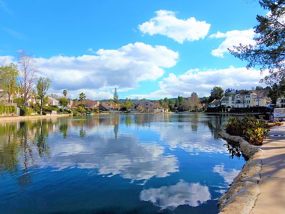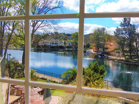 Enjoy lakefront living in Calabasas at this two-story, 2,150 sq ft. townhome. Within walking distance to the Calabasas Tennis & Swim Center and The Commons shopping mall. Enter through a private courtyard into a well-lit foyer with vaulted ceilings throughout. This home features walnut hardwood flooring, decorative iron staircase railing, recessed lighting, one full-height fireplace and granite kitchen countertops. Step out onto the pergola covered back patio into a fully fenced backyard with gate access just steps to the water. All 3 bedrooms located upstairs, each with their own full bathroom. The master bedroom extends into a lake view sitting area and the two other bedrooms have front balcony access overlooking the greenbelt.