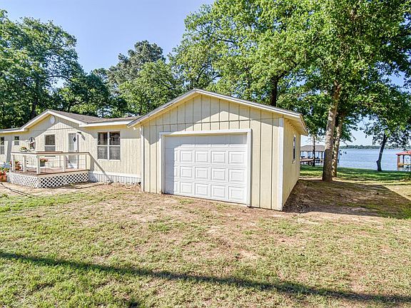 Beautiful waterfront lots with 3b 2bath manufactured home on Lake Palestine with open water view and stunning sunsets. DEFINITELY a must see! 160 feet of waterfront shoreline. Retaining wall and boathouse were built just under two years ago. The boathouse is 30 X 48, 2 slip with large sitting area and enclosed storage. Swimming area is clean with a sandy bottom and has a gradual slope for lots of summer fun in the water.The breeze is always present even during the hottest of summer days.Recently been updated with hardwood floors, doors, trim, paint, new AC and new hot water heater. The detached garage is 16 X 25. Only 30 minutes from South Tyler, Great for your permanent home, a weekend getaway or second home.