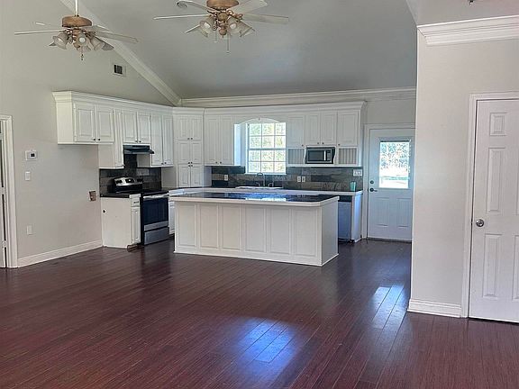Quiet dead end street. Sit on your back porch and watch the deer, turkey and wildlife graze. Perfect for farm life or homesteading. Barn has unfinished living space that can be converted into guest housing or additional storage. Bamboo flooring in the main house with split floor plan and open concept.
