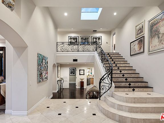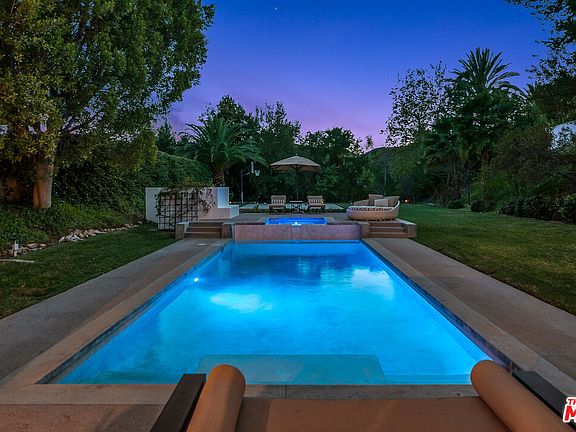 Rare opportunity to own this hidden gem in the esteemed guard gated community, "The Ridge" in Calabasas. Hidden Hills adjacent and just minutes away from the 101 freeway sits this newly updated, huge 26,825 sf lot compound. Created using only the finest materials, this elegant nearly ~5,000 sf, 5-bedroom, 5-bathroom home reflects timeless quality and showcases exquisite finishes in its entirety. Through double wrought iron front doors, you are welcomed to a grand foyer with soaring ceilings, skylights providing ample light and a stunning staircase. The main level features a formal living room with fireplace, formal dining, and a gym (bedroom). The gourmet Chef's kitchen includes a breakfast area, stainless steel Viking appliances, granite countertops, and a large island with seating that opens to the family room. Up the imposing staircase is the gracious primary suite, which showcases stunning views overlooking the grounds, a sitting room, fireplace, his & hers walk-in closets, and spa-like bathroom with free-standing tub. Your substantial backyard hosts a large pool, spa, half-court basketball/sports court, matured landscaping providing extra privacy, and lots of yard space. 23354 Park Colombo is move-in ready and a must-see!