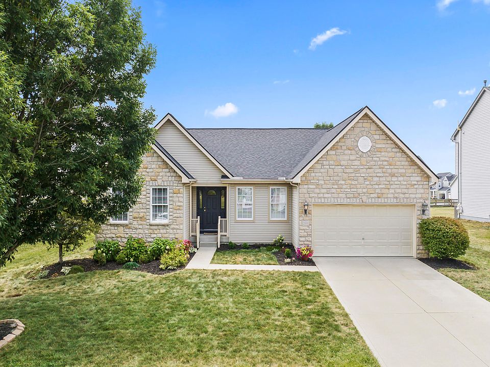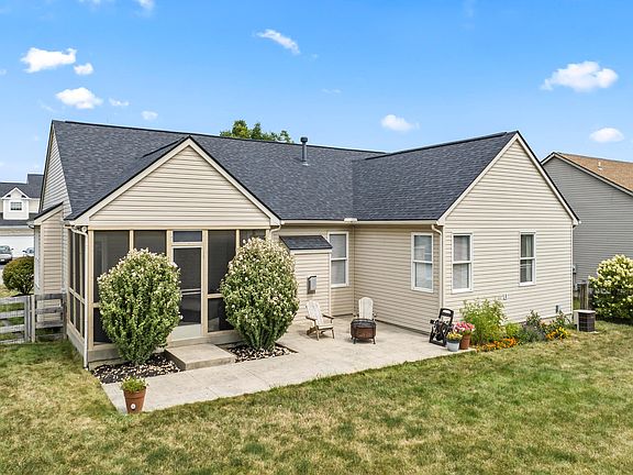 Discover the perfect blend of upgrades, functionality & convenience with this rare ranch home, featuring 4 oversized bedrooms & 3 full baths and over 4,200 sq ft of finished living space. The open-concept main level boasts a vaulted great room with a fireplace, abundant natural light, and formal dining. The kitchen features new granite counters, stainless steel appliances, an eating area, and walk-in pantry. The huge vaulted primary suite includes a custom-built walk-in closet and new granite counters. Professionally finished lower level includes a theatre room, wet bar, full bath, and 3 versatile rooms with closets, offering potential for two more bedrooms. Outside, enjoy a screened porch, fenced yard, stamped patio, and lush landscaping in a friendly sidewalk-lined neighborhood.