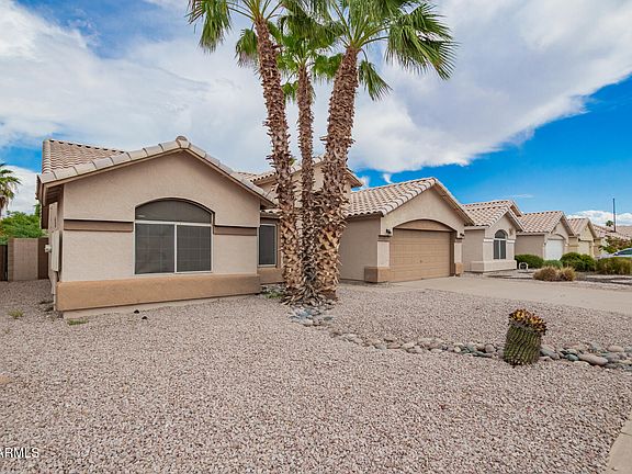 Home, sweet home! Welcome to this REMODELED charming 3-bedroom, 2-bath residence with a 2-car garage and a low-maintenance desert landscape. Discover a spacious living room with soaring vaulted ceilings, a soothing palette, and a harmonious blend of wood and tile flooring. The REMODELED kitchen comes with quartz counters, crisp white shaker cabinets, recessed lighting, stainless steel appliances, a pantry, and a peninsula with a breakfast bar. The main bedroom features a cozy sitting nook, direct backyard access, an ensuite with dual sinks, and a walk-in closet. Spend enchanting evenings in the backyard, complete with a covered patio, lush natural turf, a relaxing spa, and a pool for refreshing dips under the sun. Make this gem yours today!