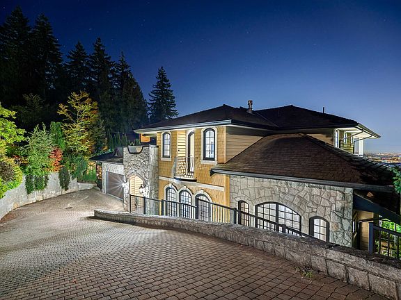 Sensational custom residence in exclusive Whitby Estates! Nestled at the end of a quiet cul-de-sac, this spectacular 5,878 sq. ft. home offers breathtaking panoramic views of the ocean, city & Lions Gate Bridge from every level. Featuring 7 bedrooms & 7 bathrooms, highlights include a grand foyer with vaulted ceilings, expansive picture windows, premium hardwood floors, elegant living & dining areas, & a gourmet kitchen with large entertaining decks. Upstairs boasts 4 en-suited bedrooms including a stunning primary suite with walk-in closet & spa-like ensuite. The lower level offers a rec room, media room, & additional en-suited bedrooms, all opening to a level, beautifully landscaped backyard with unobstructed views.
