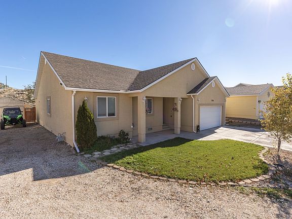 Welcome to an inviting single-story home located in a desirable Elko neighborhood with an oversized City lot. This home blends spacious comfort with modern finishes, offering an excellent opportunity for anyone. The home is very spacious, clean and move in ready. The living room boasts vaulted ceilings and a gas fireplace, creating a warm and open ambiance.