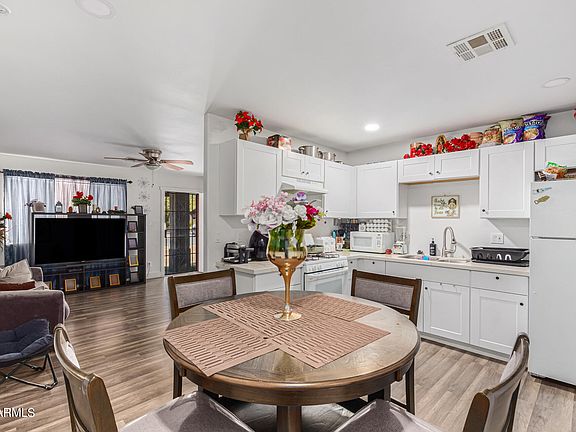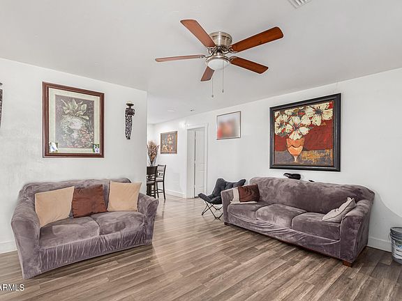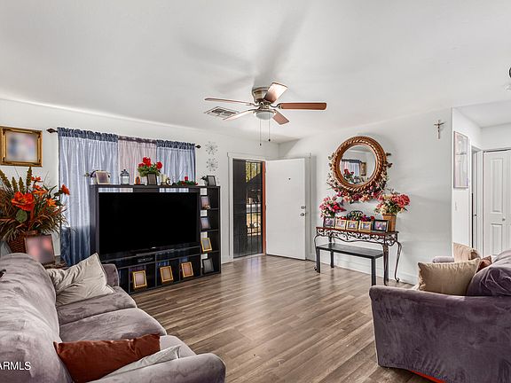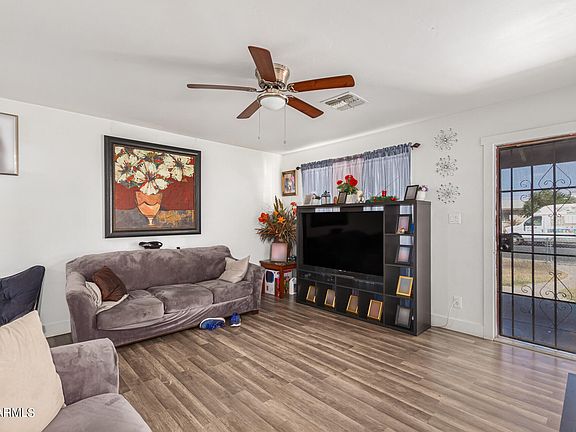 Adorable 3-bedroom property in Phoenix is now on the market! Upon arrival, you will be greeted with plenty of parking space and a cozy porch where you can sit while sipping your favorite drinks. Inside, you'll find wood-look floors throughout and a perfectly-sized living room, stay cool in the AZ heat with the 1-year-old AC unit that keeps your future home fresh and comfortable all summer long, new electric panel recently installed. Adjacent to the main living area is the eat-in kitchen boasting ample white cabinets, recessed lighting, quartz counters, and sliding glass doors open to the back patio. Fall in love with the primary bedroom offering a walk-in closet. The nice-sized backyard provides a lot of potential - just waiting for your creative touch. Don't miss this opportunity!