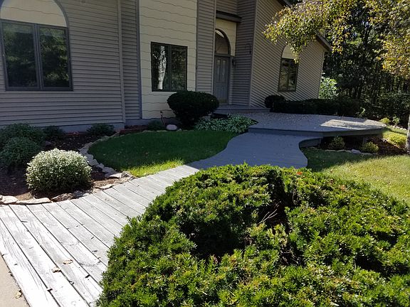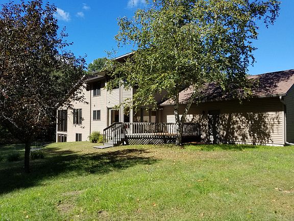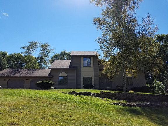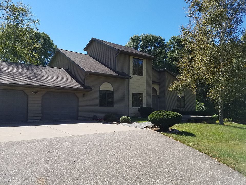 Contemporary style 2 plus story 5 bedroom, 3.5 bathroom 3700 square foot open concept floor plan home. Sun solarium atrium to dining and vaulted ceiling in living room with woodburning fireplace. Spacious kitchen with an abundance of cabinetry, high end flooring and newer appliances. Dinette area to multi-level deck to fully fenced in back yard. First floor master suite with vanity area, whirlpool tub and large walkin in closet (in all bedrooms). Second level has 2 bedroom with a shared bath with two sinks.The bunk house bedroom is on the 3rd level. A bunk bed set up like no other. Walk out lower level family room with wood burning stove, full bath, bedroom or office space, laundry and storage. Basement has access to garage. Oversized 2 stall garage space on a 2 acre nicely landscaped yard. A great home design with sun filled rooms. Directions: North on 2nd street to Cty X, West over 1-39 right on Scenic Dr, Left on Pinewood. End of Cul du sac.
