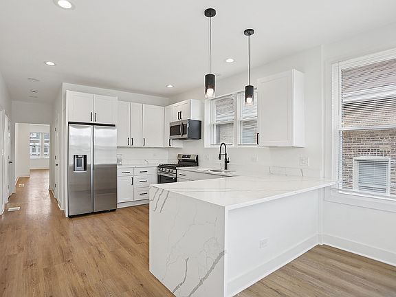 One of Berwyn's finest jumbo brick bungalows - fully remodeled from top to bottom! This solid home blends timeless charm with modern luxury and features a rare, highly sought-after side driveway. Step inside to an open, spacious floor plan with luxury vinyl wood floors throughout, a bright living and dining area, and a versatile office space. The stunning kitchen showcases quartz countertops, a large peninsula with seating, a walk-in pantry, and stainless steel appliances. The main floor offers three bedrooms and a full bath designed with both style and function in mind. The entire second floor serves as a private primary suite - complete with its own living room, massive closets, and a spa-inspired bathroom with a double vanity. The fully finished basement adds exceptional versatility with four additional bedrooms, a full bath, and a dedicated laundry area - perfect for a growing family or extended living. Outside, enjoy a fenced yard and a two-car garage. Additional upgrades include 200-amp electrical service, newer plumbing, newer windows, dual furnaces, and dual A/C condensers. Truly one of a kind - this jumbo bungalow is a must-see!