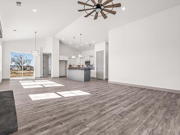 Located in northwest Grand Junction just off 24 Road and H Road in the new Silver Spur Subdivision, this beautiful newly constructed home offers a bright and open floor plan with a modernesque black, gray, and white palette. From the front entry, the vaulted ceilings and industrial-style lighting and fans catch your eye while the gas log fireplace with its wood mantle and stone hearth create a warm and inviting space. Every detail has been meticulously accounted for in this home from the 4th bedroom/office to the quartz countertops, under-cabinet lighting, glass tile backsplash, and tray ceiling in the master bedroom. Privacy and luxury come to life in the homes master suite from the split-bedroom layout and the dual vanity and walk-in shower en-suite. Situated on a corner lot, this home provides the ideal location with quick access to shopping, eating, and recreation. Vinyl fencing is included in the listing price.