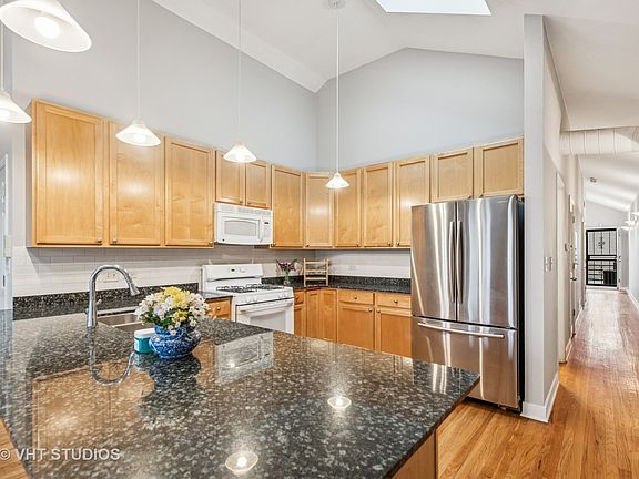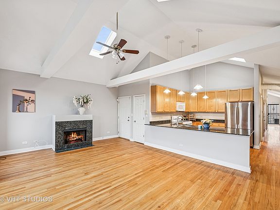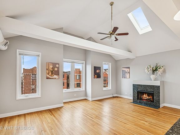 Bright and spacious 2BR/2BA penthouse-style condo in the heart of the West Loop! Sunlight pours into the vaulted-ceiling living room, kitchen, and bedrooms through multiple skylights, highlighting the beautiful hardwood floors throughout. The generous living area features a cozy fireplace and brand-new south-facing windows. The kitchen boasts granite countertops and 42" maple cabinets. The primary bedroom offers a luxurious retreat with a separate shower and Jacuzzi tub. Enjoy the convenience of in-unit laundry and a gated parking space in the rear. Step out onto the back deck and take in stunning city views. Ideally located near UIC, with easy access to the Blue Line and I-290.
