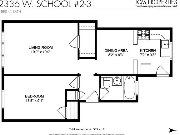 - Vintage 1 Bed 1 Bath - Eat-in kitchen - White cabinets - Black countertops - White appliances - Vintage bathroom - Hardwood flooring in main area - Tile flooring in kitchen - Great closet space [Photos are from a similar unit; some finishes and layout may differ] Claremont & School - Cozy, tree-lined street - FREE Heat - On-site laundry - Cats welcome! - Great shops and restaurants in the neighborhood - Nearby grocers and gyms - Short distance to River Walking Path - Several bus lines nearby (#49, #50, #52, #77, #152) - NO SECURITY DEPOSIT - 24-hour emergency call center - No dogs, except service animals ICM Properties has been proudly managing apartments since 1966. Heat, water, and trash are included.