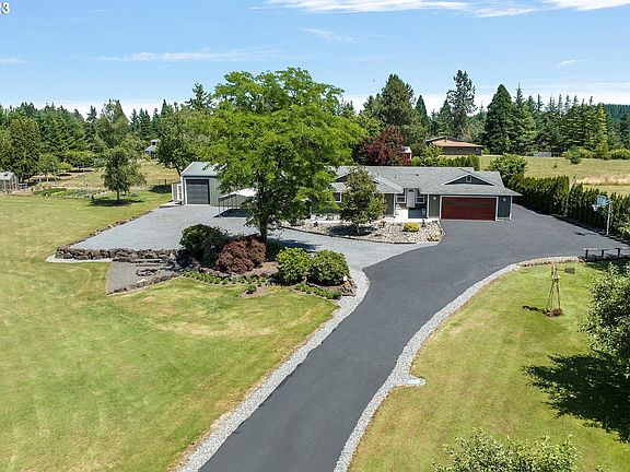 Close in acreage - minutes to city. Pride of ownership is shown thru out this home and property. All on one level remodeled home! Including remodeled kitchen and great room. Large kitchen has granite counter tops, large island, recessed lighting, small desk area, newer stainless appliances and door access to back yard. Great room has vaulted ceilings & tongue & groove ceilings w/beam accents. Home is fully fenced w/gated driveway access. Plenty of room for all the toys! Includes RV electrical hookup. Don't miss the 24'X 36' shop w/10' bay door,concrete floor, gutters, propane,small office and more. Mature landscaping w/many fruit/hazelnut trees. Additional custom features include solid wood hickory flooring, hickory cabinets, solid wood interior doors. Please see features list for additional details.