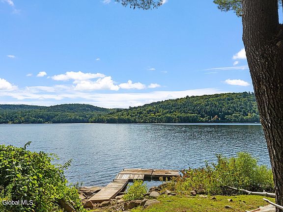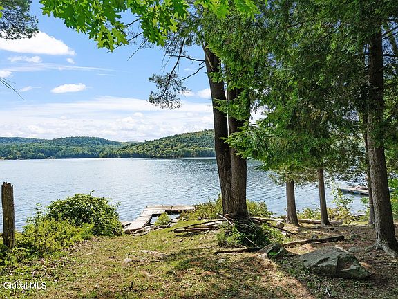 Great Sacandaga Lake- Lincoln Log Home on 0.80 acre lot! Directly across the road from the lake! You can't help but love this home once you step inside! The living room has a gas fireplace and cathedral ceiling with triangular windows to view the lake and privacy setting & access to the wrap around deck. Open floor concept- cherry kitchen with island, granite counters & stainless appliances- overlooks the dining area and living room all with pine flooring. Primary suite on main floor has radiant heated floor bath and has a private screen porch. Office with skylights. 2 bedrooms on second floor with loft overlooking the living room. 4th bedroom in the basement. Basement offers 1 car garage and lots of storage. Most furnishings included. Partial fenced yard. Lake permit of 100' with dock.