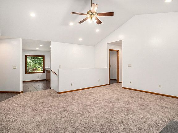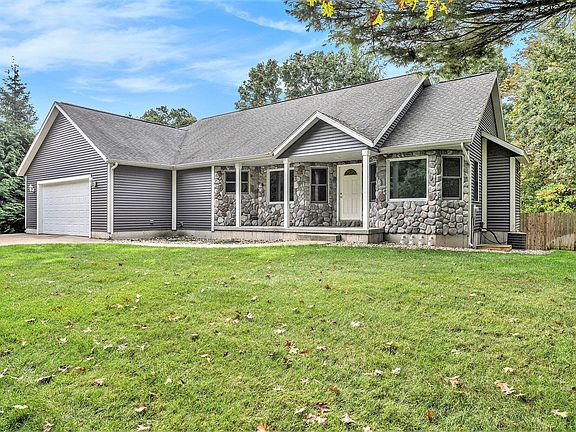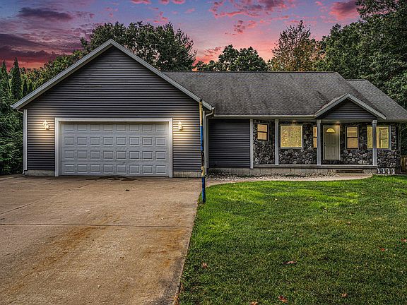 This 4 bedroom, 3 bath home is in a neighborhood but is not in an association. Living room has vaulted ceiling, with slider out to large deck. Full walkout basement offers a large living room, full bath, fourth bedroom, and storage. The walkout basement leads out to a patio and a large private backyard. The backyard is fenced in with one single and one double door. New carpet 9-2025, new 20 gallon per minute well pump 9-2025, hot water holding tank 2025, 2 zone drain tile system by Ayers with battery backup, 200 amp electrical service, furnace new blower motor 2023, UGS w/self draining sprinklers 3 zones with 4th ready to wire, solid pine wood interior 6 panel doors, septic 2 tank system. 26x30 attached garage fully insulated and finished with hot and cold faucets.