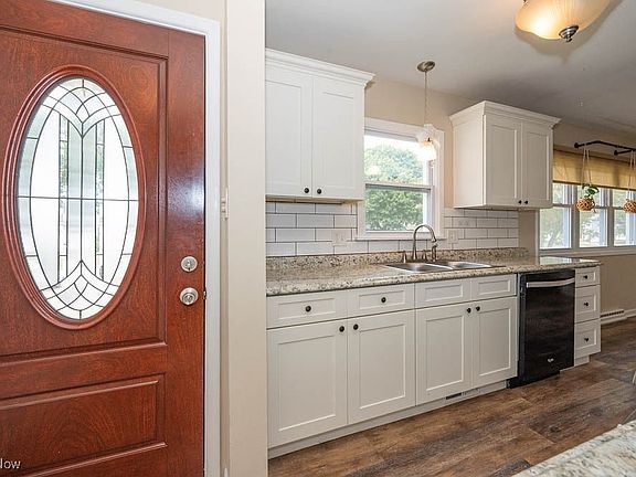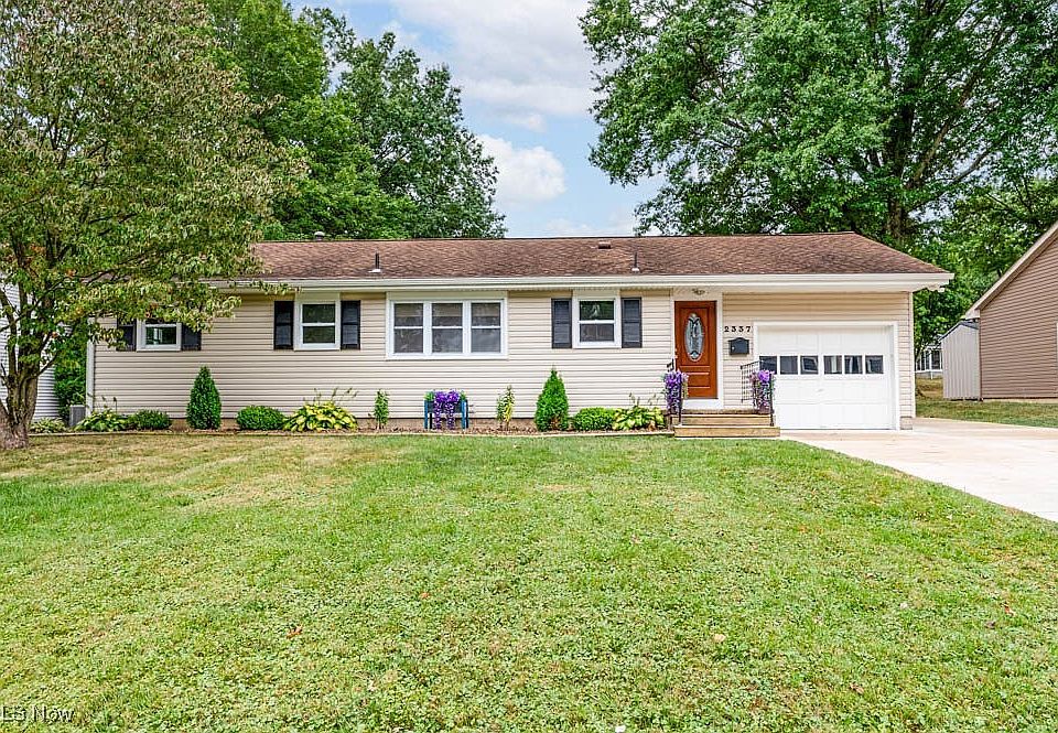 Step inside this beautifully updated 3-bedroom ranch and fall in love with its charm and comfort. The spacious living room welcomes you with refinished original hardwood floors and newer patio doors, filling the home with natural light. The updated kitchen is a showstopper, featuring newer cabinets with soft-close drawers, a subway tile backsplash, sleek countertops, laminate flooring, and a generous eat-in area—plus all stainless steel appliances are included. The bathroom boasts dual vanities, a stunning tiled tub surround, and stylish tile flooring. Throughout the home, you’ll appreciate the newer interior doors and modern light fixtures. Major updates give peace of mind, including a newer furnace and central air, updated electric panel, energy-efficient windows, siding, gutters, and downspouts (all replaced in 2018), plus a newer roof (2008) and hot water tank (2013).