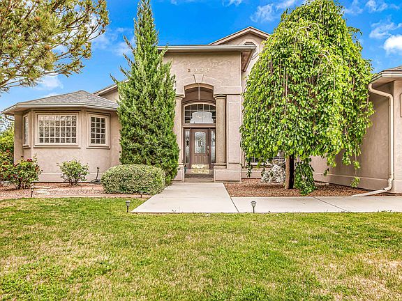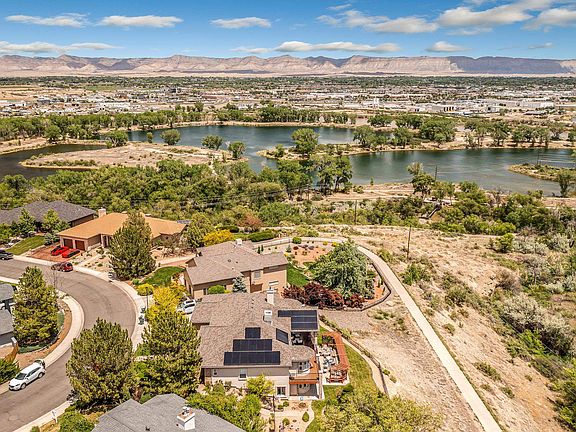 This property is situated on a generous ½ acre lot, perfectly located on a cul de sac backing to a series of connected lakes, providing stunning water views and direct access to the hike and bike trails around the lakes as well as the Colorado River! Think wildlife viewing, hiking, fishing, biking and more literally right out your back door! Enjoy panoramic views of three iconic mountains—the Colorado National Monument, the Grand Mesa, and the Book cliffs from throughout the home’s expansive windows framing the gorgeous local landscape. These breathtaking vistas offer a picturesque backdrop to your everyday life. Indoors you’ll appreciate having room for everyone with 5 bedrooms, 4 bathrooms, multiple flex spaces for entertaining, open kitchen/living dining area, and a 3 car garage with additional parking pad. You’ll appreciate practical aspects of this home like the OWNED SOLAR for lower utility bills, newer roof and hot water heaters, and all upgraded stainless steel matching appliances in the kitchen, the heart of any home! Schedule an appointment for your private tour of this Redlands property in the popular South Rim subdivision, just minutes away from grocery, dining, shopping, and Grand Junction’s beautiful downtown area.
