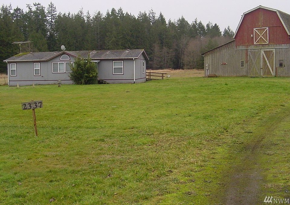 5 Acres with 1996 Double wide and 40 X 50 barn with hay loft-3-4 ac pasture with 1 ac in fir trees on east side--2337 West Valley Rd--ready to move into--$199,500--good well and septic--sunny level acreage--2.3 mi south of Chimacum school