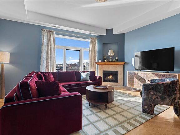 Cozy gas-starter fireplaceWalk-out balconyLarge second bedroomNew bedroom carpetingOversized islandUnobstructed city skyline viewsSouthern exposure