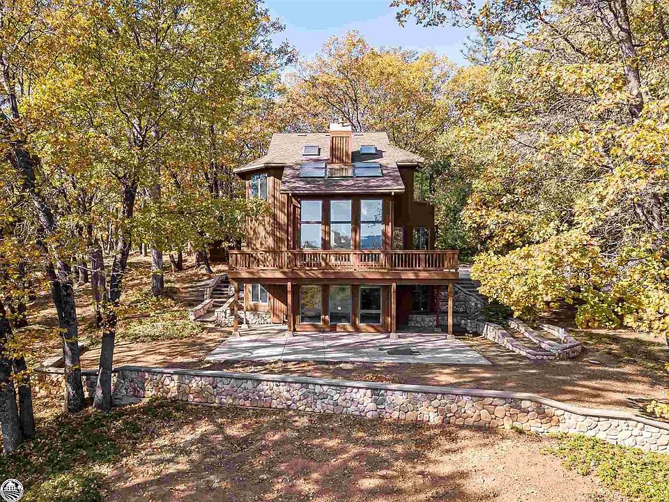 Escape to your own mountain retreat nestled in the Sierras! This modern home is light and bright throughout offering expansive views of the forest and beyond. With over 6.5 acres on a level to gentle slope behind a private gate, this property offers many possibilities as a vacation get-away or primary residence. The great room, warmed by a woodstove, is an open concept that flows into the island kitchen. Adjacent to the great room is the high vaulted sun room, currently used as a dining area - this room was designed to offer amazing views and passive solar heating. Two upstairs bedrooms feature vaulted ceilings with skylights; the owner's suite has a large walk-in closet and private bath room. There is a large deck and hardscaped area perfect for entertaining. The lower level offers both a separate bed/bath, second sunroom, and bonus living space. There is plenty of space for multiple vehicles, toys and there is even RV electrical hook up just off the concrete driveway. All of the exterior of the home was refinished/sealed November 2023. Located at about the 4000 foot elevation in the Cedar Ridge area, this home is just about 15 minutes to the quaint shops of Twain Harte and 25 miles to Pinecrest lake and Dodge Ridge Ski resort and the Hwy 108 corridor. Columbia State Park and ot