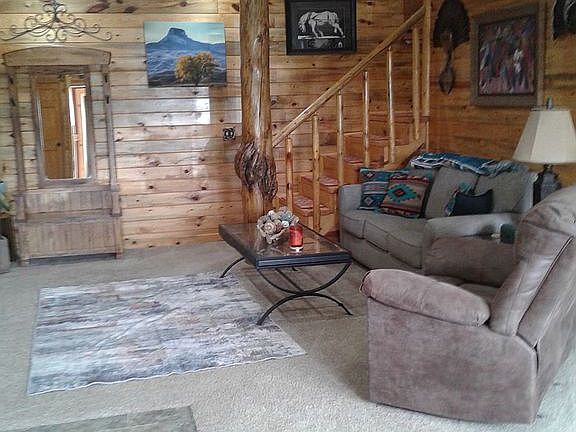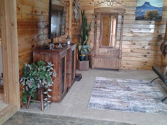 Country living close to town. Property is 4 1/2 miles from town. Beautiful 3 bedroom 2 bath home sitting on 6-7 acres of pasture land with an abundance of trees on the rest. Large deck to enjoying the wildlife and peaceful evenings relaxing. Large fenced yard with fenced garden area with raised beds and fruit trees. Hand crafted woodwork in living room and master suite. Detached heated garage. Room for Rv parking. Close to Back Hills. This property is FSBO. Contact (307)254-3979.