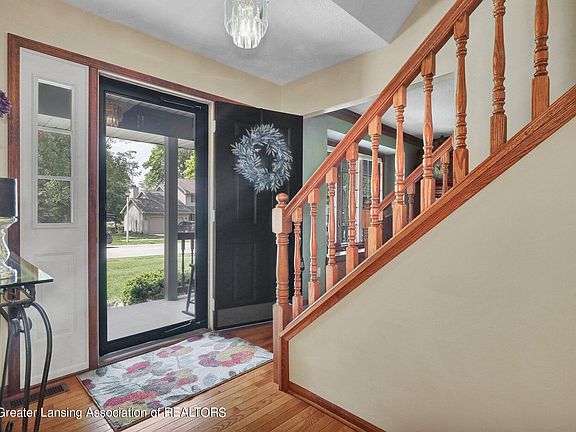 Well loved and maintained custom, one owner home. Welcoming wrap around porch to sit & stay awhile. Traditional floor plan with a surprise addition of an office/4 season room. Imagine your remote office bathed in natural light with nature as your backdrop. Productivity overload. Tucked into the outer rim of Loch Woode Estates, the backyard eases into the former Chisolm Hills Golf Course. Quiet and comfortable. Beautiful hardwood on the main level. Newer roof; brand new furnace & sump pump. Lovely kitchen, dinette & family room seamlessly flow. Masonry fireplace adds both charm & function. Enormous composite back deck serves a party or a simple respite. All bedrooms are up, Primary ensuite is large w/every gal's dream closet. Lower level contains additional living space, gym, enormous storage, Mechanical room. Built-in shelving holds all the treasures. Walk out. Backyard shed holds all the tools. Workbench. Irrigation. Security system. Oversized drive w/basketball hoop. So much value. Crisp. Clean.