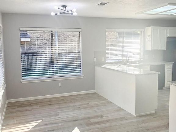 Gorgeous, updated one -story brick home in sought after Hunters Ridge Subdivision! Home features 4 spacious bedrooms and 2 baths, beautiful new ceramic flooring throughout, everything listed was updated in 2022! Beautiful granite counter tops in kitchen & bathrooms! Refrigerator included! White cabinets! Fairly New sinks! lighting, ceiling fans w/ light kit, fixtures! Interior neutral paint throughout! Awesome spacious family room w/wet bar, high ceilings & floor to ceiling brick fireplace w/ built ins! Great views to your nice backyard & patio area! Separate formals off entry way! Spacious Primary bedroom! Secondary bedrooms located @ back of house for added privacy! Both bathrooms recently updated! Front tall shady trees! Detached garage! Pretty curb appeal! Corner lot! Minutes from the acclaimed Bear Branch Elementary school & zoned to Middle & High schools! Ride your bikes to school over the beautiful Kingwood Trails! Close to shopping, & all local amenities! You will love it!