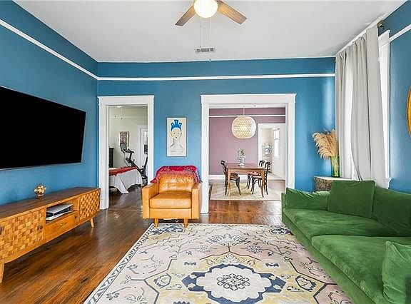 Gorgeous Uptown property that checks all the boxes available 4/1/2025. This second story unit comes with off-street parking, in-unit washer dryer, a private balcony and a large yard. The kitchen was fully remodeled in 2023 with brand new cabinetry and counter tops - garbage disposal, hood vent and ice maker all included. Original hardwood floors and 12 foot ceilings throughout. 2 large bathrooms (one with a bathtub). All bedrooms are independent (not shotgun style), although two rooms do connect for a possible nursery (the middle room does have a private entrance if roommates are occupying). The yard is very large, is fully fenced and is maintained by the owner (outdoor furniture to remain for tenant use). Central AC. Well behaved pets considered w/ reasonable fee. Utilities paid by tenant. Owner/agent. NOT FURNISHED.