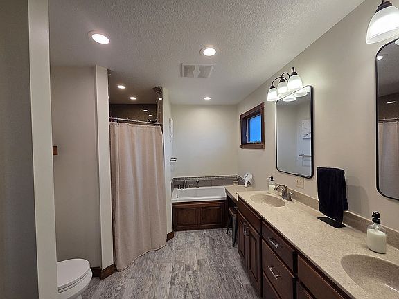 Ranch style home with full finished basement including a second full kitchen. The home features a brick exterior, touch technology kitchen faucets, custom maple cabinets with soft closed doors and drawers, large kitchen island, hidden walk-in pantry in kitchen on main level, walk-in closets, separate office space on main level, separate fitness or bonus room in basement, quartz and granite countertops, onyx bathroom countertops with integrated sinks and shower surrounds, heated bathroom floors on main level, safe room under porch, double pane Jeld-Wen aluminum clad casement windows. Hardwood floors on main level with carpet. Tile in bathrooms. Luxury vinyl tile and basement. The property also features a 30x46' shed with an unfinished loft above. The loft is about 600 sq ft.