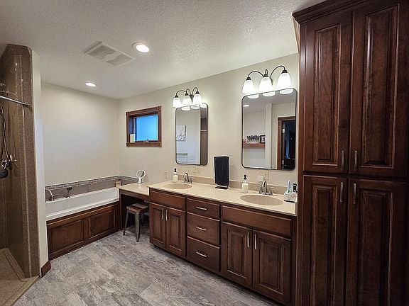 Separate office spaceHardwood floorsHeated bathroom floorsWalk-in closetsLarge kitchen islandOnyx bathroom countertopsBrick exterior