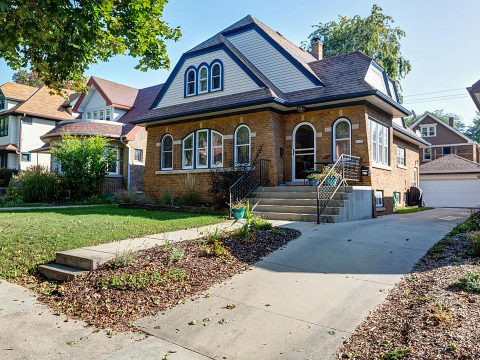 Welcome home to this beauty!! Brick Bungalow Duplex offers a side drive to 2 car garage and a very nice yard and inside you will find an abundance of charm and character. Main floor unit offers 2 spacious bedrooms, cozy foyer with French doors leading to living with artificial fireplace flanked by built ins and beautiful natural woodwork, plus a dining room with a gorgeous built in, HWF and more natural woodwork. The second floor apartment offers hardwood flooring, a large bedroom, eat in kitchen with pantry storage, formal dining area and cozy living room space.