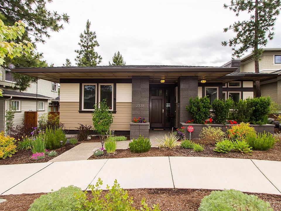 This single-level home by Hackbarth Builders contains many appealing features including contemporary finishes and an 11-ft great room ceiling. Large window areas assure a bright interior, hardwood floors, built-ins on fireplace wall, hall bookcase. Island kitchen w/tile counters faces a dining area that opens to a large patio w/beautiful garden, matured trees and fence for privacy. Tile floors & counters in baths. Master has soaking tub & separate shower. Lots of storage, over sized garage.