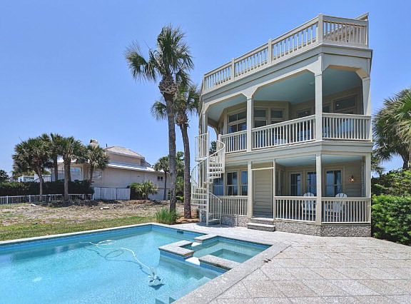 2338 Ocean Rd was totally renovated in 2016. Enjoy the incredible views and ocean breezes of Sea Island and Gould's Inlet from one of your porches or your in ground pool. This 3 level cottage with a garage has an elevator with access to all floors. Four bedrooms, four full baths and one 1/2 bath, two living areas with an open living, dining, kitchen area that works great for entertaining. One of the best ocean front views on St. Simons Island that you will enjoy from almost every room in the house! This house is ready to move-in and enjoy.