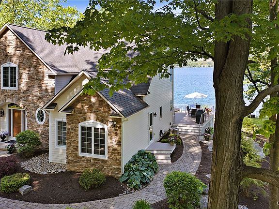 Exceptional luxury lakefront property with 107 feet of pristine Skaneateles Lake shoreline, just minutes from Skaneateles Village and a short stroll from Anyelas Vineyard. Stunning panoramic lake views flow throughout the open-concept living spaces. The house features 4+ bedrooms and 5 full baths including a stunning first-floor primary suite with fireplace and marble bathroom. Downstairs there is an additional 950+ square feet of beautifully finished lower level. The property has been meticulously renovated and impeccably maintained. Entertain and enjoy the lake from the expansive deck, expansive waterfront, and fenced-in backyard. Located within the award-winning Skaneateles School District, this home offers the perfect blend of luxury and location in a picture-perfect lakeside setting.
