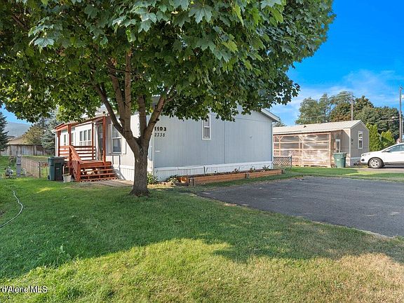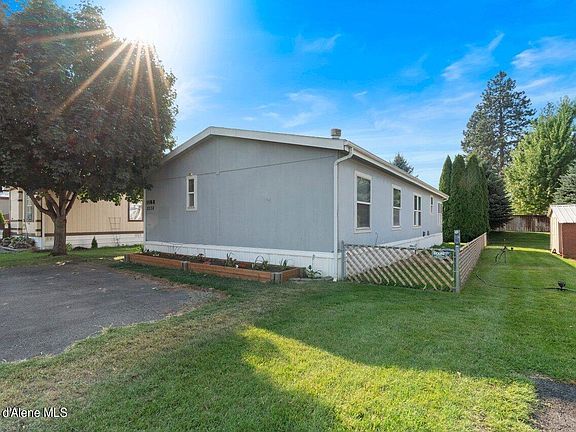 3 bedroom 2 bathrooms Manufactured Home located in Camelot Estates in Post Falls. 1539 sq. ft. with Bonus Room that can be used for an office, den or guest room. Split floor plan, partially fenced back yard in a well-maintained community. Forced air heating, gas fireplace and A/C. Covered front porch, and additional storage shed, appliances included. The park has a community center with a pool and playground, space rent is $530 mo., includes S/W/G & snow removal.
