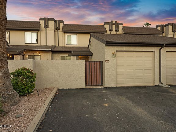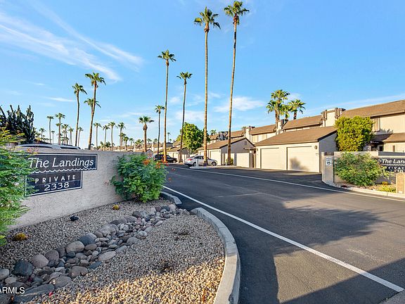 Location, location, location! This 3 bedrooms, 1.75 bathrooms home has a 1 car garage, 2 patios & backs to the water. Kitchen has granite tile counter tops, tiled backsplash, breakfast bar, and stainless-steel appliances. There is a view of the back patio & water off the great room. There is a balcony off the primary bedroom that also has water views. Both bathrooms have been updated. First level has tile flooring that resembles wood & there are ceiling fans throughout the home. Laundry is in the garage and the washer & dryer are included. The Landings HOA fee includes water, sewer & garbage collection fee. Two additional parking spots in front of unit. Convenient Mesa location near shopping, dining, schools, Banner Desert hospital, Mesa Community College, US60, Loop 101 & so much more! Dobson Ranch community has approximately 65 acres of common area and facilities that include seven man-made lakes, three rec centers, tennis courts, four swimming pools, playgrounds, parks and scenic lakeside pathways. Community events include, but are not limited to boating, fishing, fitness in the park, tournaments, yoga, pickleball, swimming, tennis, water aerobics and so much more. You're not just buying a home, you're buying a lifestyle!
