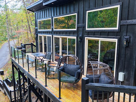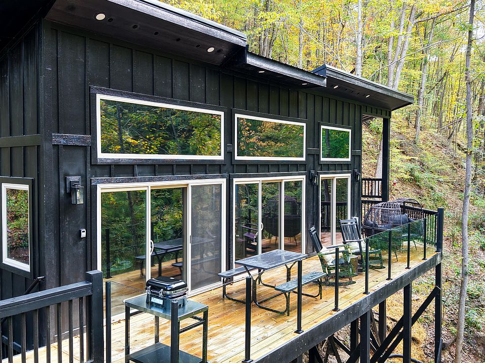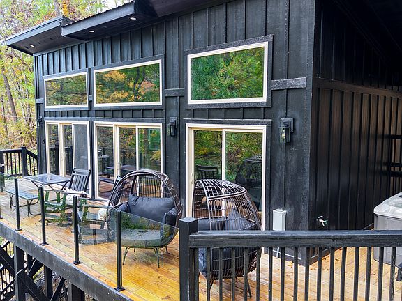 Step onto the balcony with sleek glass railing and take in the unobstructed pondfront views—a peaceful backdrop for your morning coffee or evening unwind. From its craftsmanship to its design, this cabin delivers quality and comfort throughout—creating a welcoming space that feels truly one of a kind.