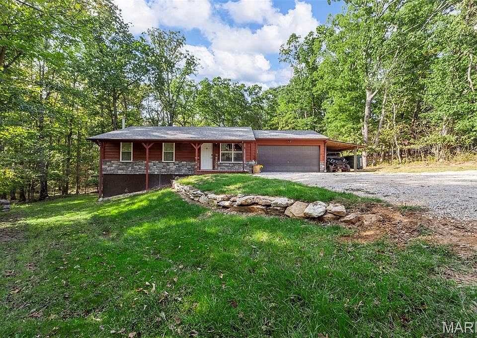 Welcome to your own private retreat! This beautifully updated 4-bedroom, 2-bath home sits on over 3 acres in a quiet rural community, offering peace, privacy, and the perfect blend of comfort and convenience. Backing to Innsbrook, the property provides both scenic surroundings and a strong sense of seclusion. The home has seen major updates within the last 4 years, giving buyers peace of mind. Key improvements include:New septic system installed in 2020 and professionally cleaned in 2024, New AC and furnace (2024), Roof replaced in 2022, Missouri Basement installed peiring and sump pump system with drain tile for a solid foundation. Inside, you’ll love the fully renovated kitchen and fresh luxury vinyl plank flooring throughout. The finished basement expands your living space with a rough-in for an additional bathroom, bedroom, and living area—ideal for guests or family. A wood-burning stove adds both warmth and charm to the lower level, while a whole-home water softener ensures comfort throughout. The property is designed for both relaxation and recreation. Outdoors, you’ll find two private on-property walking trails, including one along a perimeter fire break. Owners also enjoy access to two stocked lakes and community pavilions, perfect for fishing, picnics, and gatherings. Whether you’re looking for a weekend getaway or a permanent residence, this home combines modern updates with a peaceful country setting.