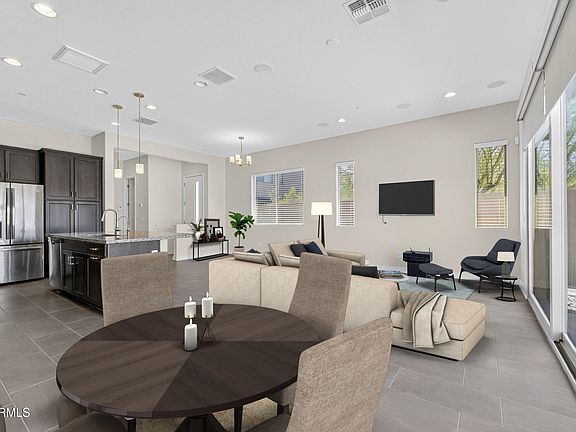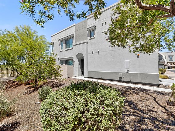 Easy living in this 3b, 2.5b townhome, located in a desirable gated community in the heart of 85255. A spacious layout and modern design gives this home both style and comfort. The beautifully designed kitchen features quartz countertops, an electric stove, and custom cabinetry, flowing seamlessly into the open living area. Expansive sliding glass doors create a flowing indoor/outdoor lifestyle leading to a tiled patio perfect for gatherings, dining or quiet evenings along with a dog run. This very desireable end unit lot provides a more open space and view. Upstairs, you'll find a flexible loft space and a convenient laundry room. An upgraded Surround Sound System is wired throughout the home as well as to the rooftop deck. The rooftop deck upgrade is ideal for entertaining and enjoying panoramic views of the Arizona landscape, unobstructed city views, beautiful sunsets and firework displays