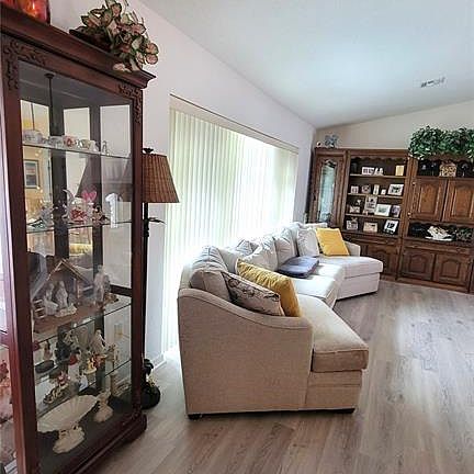 Charming, Move-In Ready 3BR / 2BA — Pool & Screened 2-Car Garage Welcome to this large, clean and move-in ready 3 bedroom, 2 bath home featuring a screened 2-car garage and a warm, welcoming screened entry. Bright and airy interiors pair laminate flooring in the bedrooms, living and dining rooms with tile floors in the kitchen, baths and family room for both style and durability. The kitchen is nicely appointed with decorative shelving above the counters and a skylight that fills the space with natural light. Updated palm-style ceiling fans and light fixtures enhance the home’s relaxed, tropical vibe. Outside you’ll find a beautiful inground pool with decorative fountains enclosed by a screened pool cage — perfect for entertaining or quiet afternoons. The lanai offers covered seating, and the fully fenced yard provides privacy and space for pets or play. Located in Flood Zone X, flood insurance is optional. Highlights - Large 3 bedrooms, 2 full baths - Screened 2-car garage - Welcoming screened entry - Laminate flooring in bedrooms, living & dining rooms - Tile floors in kitchen, baths & family room - Kitchen with decorative shelving and skylight - Updated palm-style ceiling fans and lighting - Inground pool with decorative fountains & screened pool cage - Covered lanai seating area - Fully fenced yard - Flood Zone X (flood insurance optional) Move-in ready and full of tropical charm — schedule your showing today!