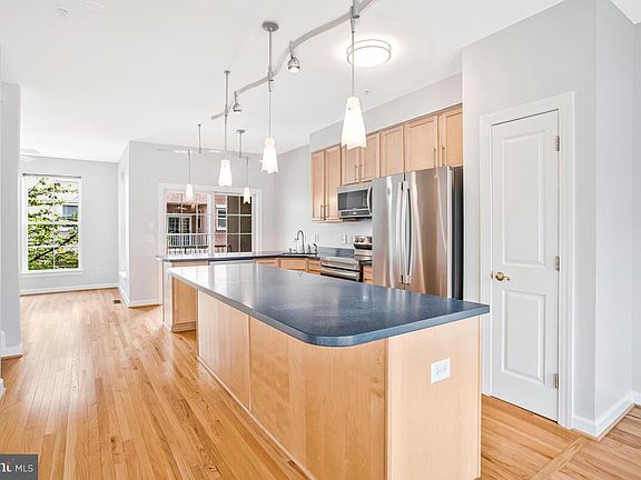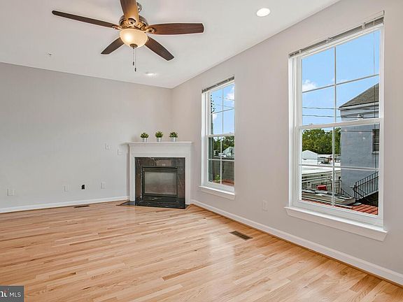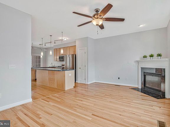 Have you wanted to live near the waterfront but without the waterfront price? A block from the Canton waterfront, you'll find a move-in ready, 4-level townhouse (2,100 SF) with a breathtaking rooftop deck showcasing panoramic downtown Baltimore and water views. The main level has open-concept living with gleaming hardwood floors and high ceilings. The gas fireplace anchors the living room with room for a sectional for TV watching. The kitchen has an incredible layout and features 42" maple cabinets, stainless steel appliances, wine chiller, center island with seating for four, and pantry. It boasts a separate dining area (or work from home space) and covered patio, an extension of your living area. On the bedroom level, two generous bedrooms including primary suite with dramatic 2-story ceiling and ensuite bath featuring separate jetted tub and separate glass-enclosed shower. A full bath and convenient laundry area are found in the hallway. Ascend to the versatile bonus room with vaulted ceilings that opens to the crown jewel - a private rooftop deck with expansive city and water views. Park your cars in the attached garage and enjoy easy access to Canton, Fells Point and Harbor East. This gently lived-in home is ready for you with fresh paint, new rear door and refrigerator.