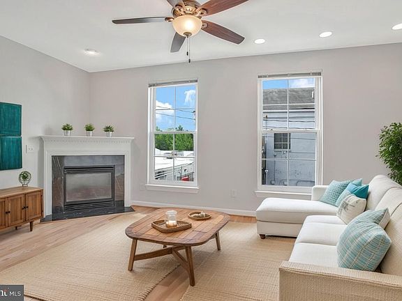 Live a block from the Canton waterfront with panoramic views of Baltimore and the water from the rooftop without the waterfront price. This move-in ready, 4-level townhouse (2,100 SF) boasts open-concept living with gleaming hardwood floors and high ceilings. The gas fireplace anchors the living room with room for a sectional for TV watching. The kitchen has an incredible layout and features 42" maple cabinets, stainless steel appliances, wine chiller, center island with seating for four plus pantry. Your future home boasts a separate dining area (or work from home space) and covered patio, an extension of your living area. On the bedroom level, two generous bedrooms including primary suite with dramatic 2-story ceiling and ensuite bath featuring separate jetted tub and separate glass-enclosed shower. A full bath and convenient laundry area are found in the hallway. Ascend to the versatile bonus room with vaulted ceilings that opens to the crown jewel - a private rooftop deck with expansive city and water views. Park your cars in the attached garage and enjoy easy access to Canton, Fells Point and Harbor East.