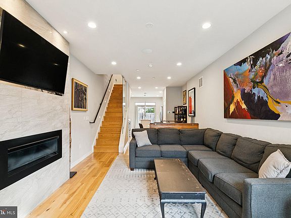 Welcome to 2339 Dickinson. This modern 4-bedroom, 3-bath home in Point Breeze right by Wharton Square Park offers bright, open-concept living with high ceilings, hardwood floors, and a contemporary design throughout. The main level features a spacious living and dining area that flows into a sleek kitchen with tons of cabinet space, stainless steel appliances, quartz counters, and a large island—perfect for entertaining. Just outside the sliding doors is a large patio great for entertaining or relaxing. Upstairs are two spacious bedrooms, a full bathroom, and laundry room. On the top floor is a Primary suite with wet bar, walk-in closet, a light filled bathroom with glass enclosed shower and double vanity, and a private southern facing balcony. The fully finished lower level offers bonus living space and a full bath, ideal for a media room or guest suite. A private rooftop deck showcases stunning city and sunset views, completing this stylish home. Located by the park and with easy access to the shops and restaurants on Washington Avenue, major highways, and public transportation, 2339 Dickinson Street combines modern comfort with the ease of city living.