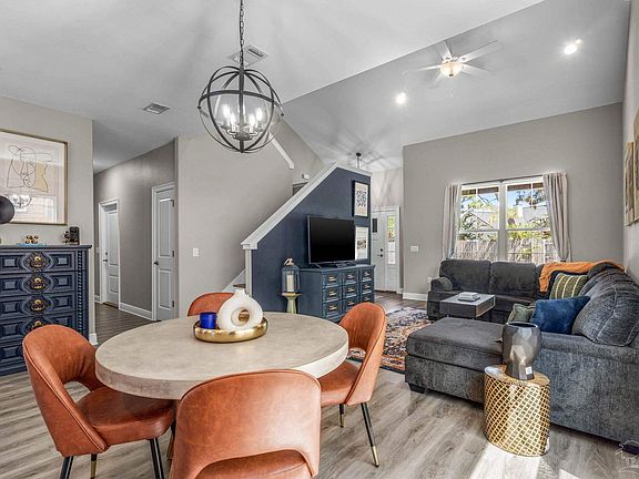 Like-New Corner-Lot Home in East Navarre Only 3 years young, this Robbins-built home feels brand new—complete with all the finishing touches already in place. Perfectly positioned on a corner lot in desirable East Navarre, it offers quick access to Navarre Beach, local shopping and dining, and Hwy 98 for an easy commute to Hurlburt Field AFB. Step onto the welcoming covered front porch and into a bright foyer with soaring ceilings that flow seamlessly through the open-concept layout. The spacious great room is filled with natural light, while a second family room at the back of the home provides a cozy retreat with floor-to-ceiling built-in bookcases, ample storage, and glass door leading to a covered back patio and fully fenced yard—ideal for entertaining or unwinding on those warm Florida evenings. The gourmet kitchen showcases all-wood white shaker cabinets with crown molding, gleaming granite countertops, stainless steel appliances, a center island, breakfast bar, and a dedicated dining area perfect for busy mornings or casual gatherings. The generous primary suite features a spa-inspired bath with an oversized tiled walk-in shower and seamless glass door, dual granite vanities with rectangular under mount sinks, sleek mirrors, and a spacious walk-in closet. Additional bedrooms are well-sized with ceiling fans and double-door closets, while the second full bath includes a granite vanity and tub/shower combo. Two extra hallway closets provide added storage. Conveniently positioned off the garage entry, a practical corridor houses a half bath, spacious laundry room, and under-stair closet keeping daily essentials organized and easily accessible. Luxury vinyl plank flooring flows throughout, while hurricane window protection and a dimensional shingle roof help reduce insurance premiums. Move-in ready and close to everything East Navarre has to offer schedule your private tour today!