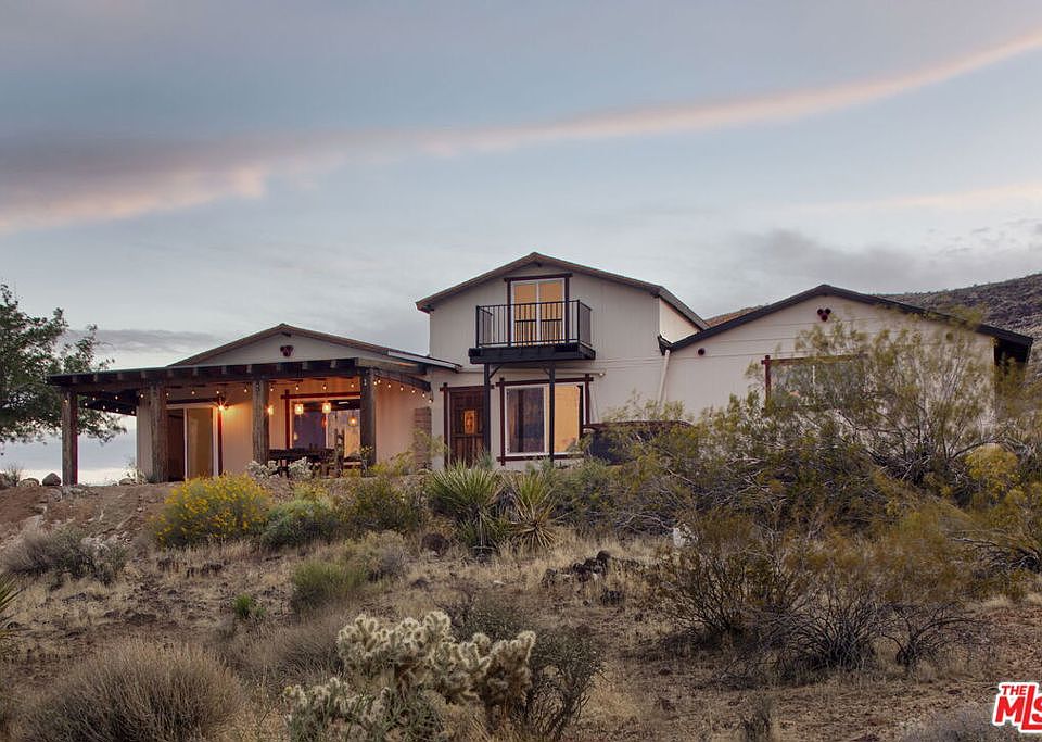 Welcome to Casa de Flamencos - a handcrafted desert retreat nestled in Flamingo Cove, an exclusive enclave at the crossroads of Pipes Canyon and Flamingo Heights. Set against the backdrop of sweeping high desert mesas, this one-of-a-kind home draws from the rich traditions of the Arts and Crafts movement, blending timeless craftsmanship with Spanish-inspired interiors. The 3-bedroom, 2-bath residence is a masterclass in materiality and design. Every surface tells a story: hand-applied plaster walls, warm Saltillo tile floors, designer wallpaper, custom limestone veneer, and hand-milled beams that root the home in its rugged, natural surroundings. At the heart of the home lies an inviting open-concept kitchen and living space - designed for both everyday comfort and elevated entertaining. Recently renovated to include black granite countertops, custom cabinetry, a central island, and a charming breakfast/dining nook, it's the perfect spot for gathering over morning coffee or sharing meals with friends. The layout is intentionally soulful and spacious, with three well-appointed bedrooms and a floor plan that encourages seamless indoor-outdoor flow. The primary suite includes a spa-worthy bathroom, complete with a wetroom, freestanding soaking tub, and rainfall shower - all framed by calming desert views. Throughout the home, every detail has been thoughtfully curated to reflect the surrounding landscape and capture the magic of desert living. Natural light floods each room, and every window serves as a canvas for the home's greatest feature - the view. From sunrise to golden hour to stargazing at night, the panoramic vistas - dotted with mature Joshua Trees, ancient boulders, and seasonal bursts of wildflowers - are truly one of a kind. Whether you're looking for a full-time family home, a desert getaway, or a high-performing short-term rental, this character-rich home offers an extraordinary opportunity to own a true work of art in one of the High Desert's most desirable and private locations.
