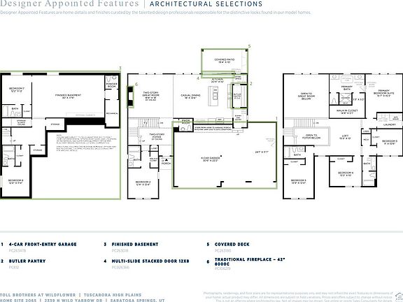 New Construction, home is ready for move in! Included finished basement! Backs to beautiful open space and is nearby to a paved trail system. The airy two-story foyer is open to the splendid two-story great room. Complementing the well-designed kitchen is a bright casual dining area, a large center island with a breakfast bar, plenty of counter and cabinet space, and a generous pantry. The impressive primary bedroom suite is highlighted by a luxurious primary bath with dual vanities, a relaxing soaking tub, and a luxe shower. Additional highlights include a versatile first-floor bedroom suite with a walk-in closet and a private bath, an ample loft, and a large flex room in the basement. Come see what our master planned community offers in person! Playgrounds, greenbelts, parks, walking and biking trails, a dog park, dog trails, pickleball courts, and future Wildflower lake. Photos are representative of designer selected finishes. Visit in person to see beautiful completed construction.