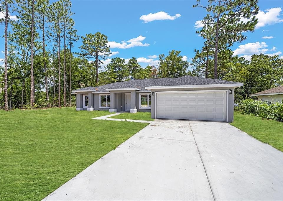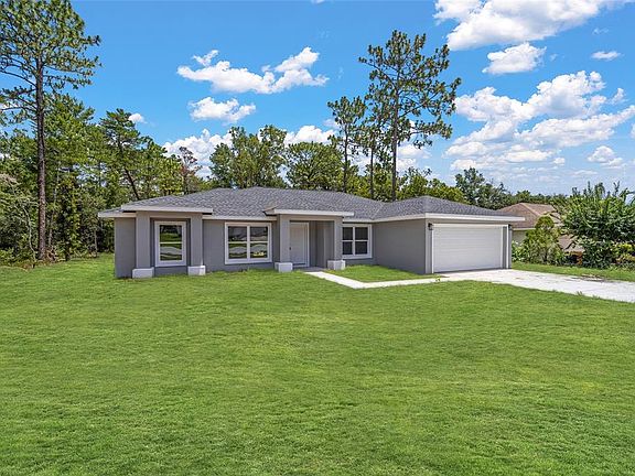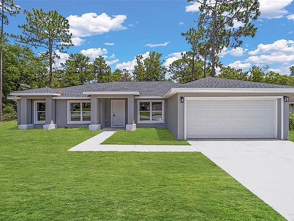 Under Construction. One or more photo(s) has been virtually staged. Photos are of an early 2024 model. Under Construction. BRAND NEW CONCRETE BLOCK HOME ON .99 ACRES! RARE OPPORTUNITY: Seize this unique chance to own a stunning home beautifully situated on a .99-acre lot Estimated completion is approximately December 31. Not all new construction is created equal. Built with durable CONCRETE BLOCK construction and featuring VAULTED CEILINGS, this home combines long-lasting quality with elevated design. The OPEN, SPLIT FLOOR PLAN flows seamlessly with LVP flooring throughout (no carpet here), delivering a clean, modern aesthetic. The kitchen and bathrooms are adorned with QUARTZ COUNTERTOPS, white shaker-style soft-close cabinets, and STAINLESS-STEEL appliances. The primary suite boasts a large walk-in closet and a beautifully TILED SHOWER WITH A GLASS ENCLOSURE—no fiberglass or acrylic inserts here. The second bathroom features a PORCELAIN TUB surrounded by DESIGNER TILE, adding a polished, upscale touch to every detail. With NO HOA , you’ll have the freedom to make this expansive property truly your own. Located just 15 minutes from downtown Dunnellon and 10 minutes from Rainbow Springs State Park, you’re close to kayaking, swimming, diving, and fishing. The nearby Rainbow Lakes Community Center offers tennis courts, racquetball, basketball, a baseball field, and a playground. Tiger Lake, with its public boat ramp, is also just minutes away. This rare combination of a premium upgraded home, and a prime location makes this an unparalleled opportunity. The pictures in this listing are of a previously built Floridian model. Call today for more information and take the first step toward owning this extraordinary property!