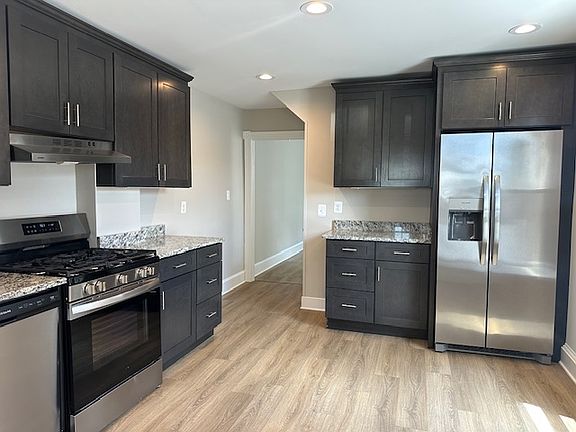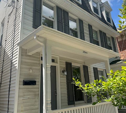- Exterior features: Beautiful landscaping in the rear, Eat-in kitchen and formal dining area, Freshly painted throughout, Full bath - first floor with tub/shower, vanity & toilet, Full tub/shower on second floor with vanity w/granite top, and toilet, Garbage included in rent, Granite counters, Large primary bedroom on second floor, New wood shaker kitchen cabinets, Secondary bedroom has a double closet with sliding door, Sewage not included in rent, Walk In Closet, Water not included in rent