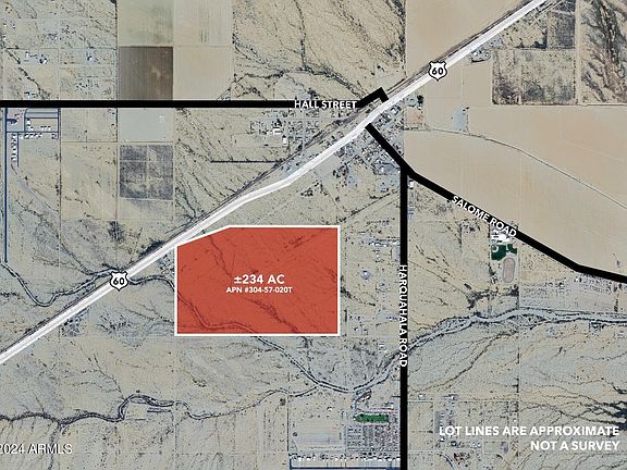 Don't miss this opportunity to develop ±234 acres of versatile land perfectly suited for a Mobile Home Subdivision or RV Park in Salome, AZ. Featuring high-visibility frontage along Highway 60, this property offers paved access, excellent exposure, and convenient utility availability both on-site and nearby.