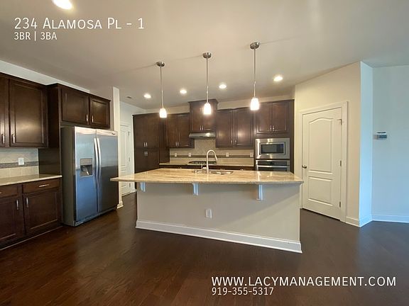This 2285 square foot townhome home has 3 bedrooms and 2.5 bathrooms. This home is located at 234 Alamosa Pl #1, Cary, NC 27519.
