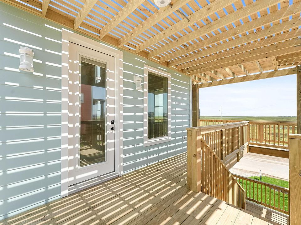 Brand new and ready for your personal touch, this thoughtfully designed coastal home blends modern style with lasting quality. Soaring 25-foot vaulted ceilings fill the space with light and capture stunning long-range views of the beach, bay, wetlands, ICW, coastal birds, and other wildlife. Built to last with 2x6 exterior walls, cement board siding, energy-efficient windows, a high-performance AC, and underground power. The kitchen offers quartz counters, 36" custom cabinetry, and upgraded appliances, including the refrigerator. Step onto the spacious, partially covered deck for year-round outdoor living surrounded by water and nature. A single-car garage provides storage for a golf cart and beach gear. Ideally located near the beach access road, golf cart path, boat launch, and Stahlman Park, it’s perfect for full-time living, a weekend retreat, or an investment. Reach out today to schedule your private showing.