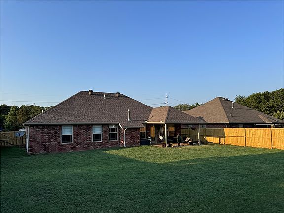 This property offers a fantastic location, just a short walk from Har-Ber High, Hellstern Middle School, and Bernice Young Elementary. It’s move-in ready with recent updates including luxury vinyl flooring in the living room and all bedrooms, beautiful light fixtures, and custom window coverings. The kitchen features a newer dishwasher, and the home has an updated water heater. The master bath is a highlight with double vanities, a whirlpool tub, and a walk-in shower. The living room includes a cozy gas log fireplace. Outdoors, you'll find a spacious backyard with a covered patio and a newer fence, ideal for outdoor enjoyment.